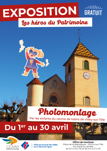 Venez découvrir les photomontages des enfants du centre de loisirs de Villey-sur-Tille à travers l'exposition "Les héros du Patrimoine"